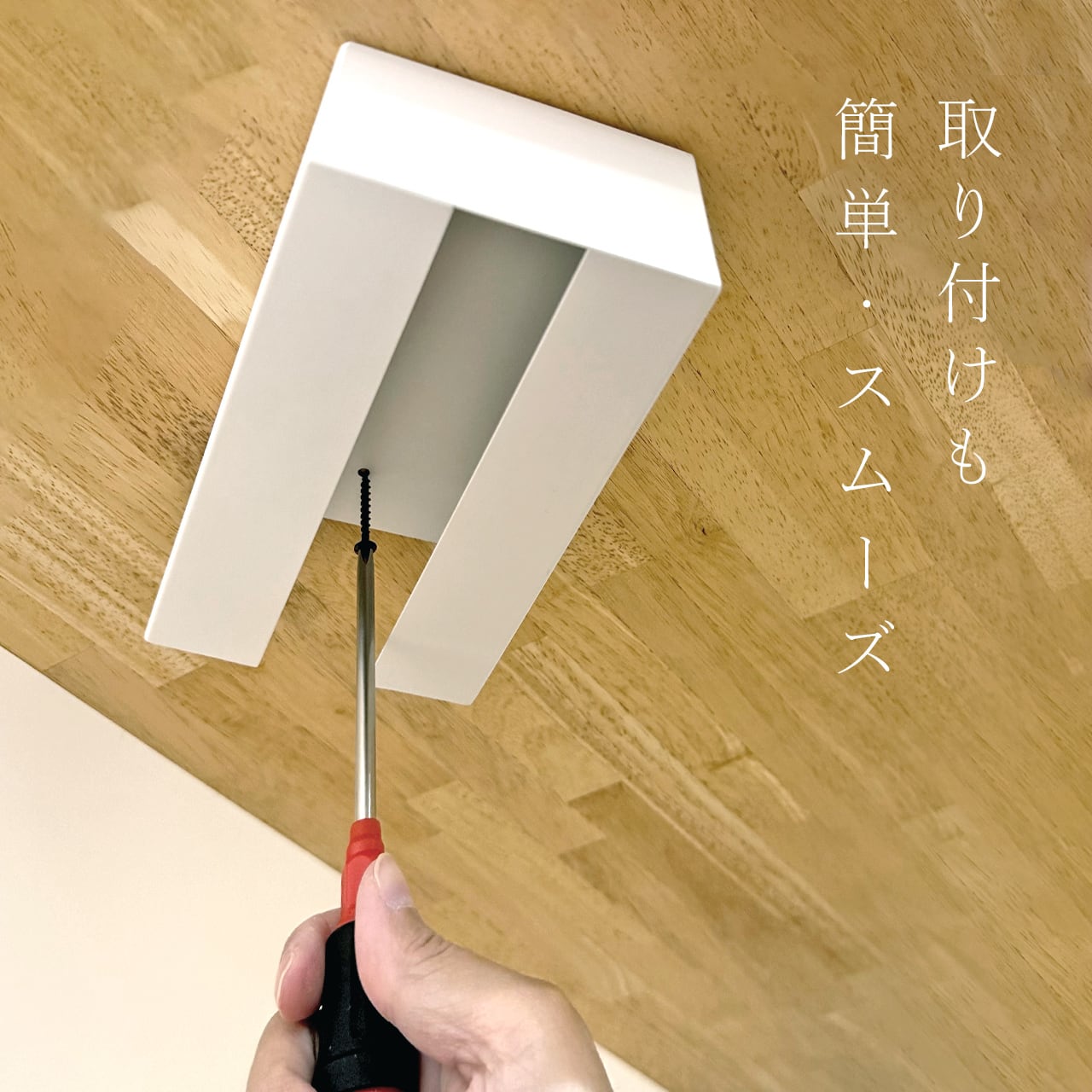 シンプルでスタイリッシュなデザインに加え、ティッシュボックスを机の下に設置することができるため、生活感の出てしまう外観を隠しつつ設置することができます。
